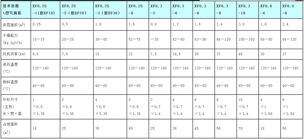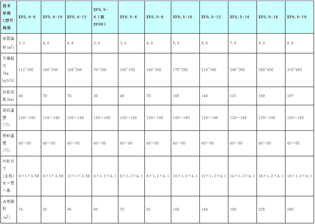 沸腾床干燥机可实行自动化生产,是连续式干燥设备。干燥速度快,温度低,能保证产品质量,符合药品生产GMP要求,蒸汽、电、热风炉均可配用。技术参数: