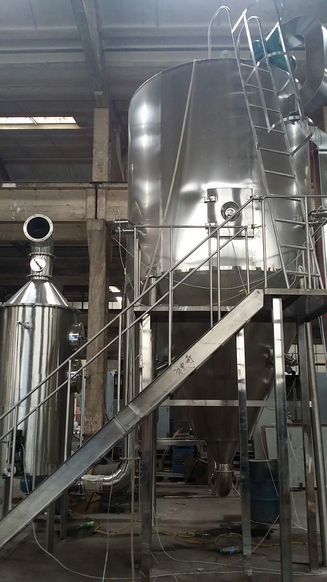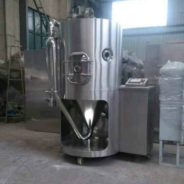 该机采用全封闭形式,所有部件均采用不锈钢制造,配有三级净化装置,过滤后的空气达十万级要求 。简体与顶部装有冷壁装置,使壁温<80℃,物料在壁上停留也不焦化变质现象,大大增加了收粉率(达95%以上),而且不会产生混药现象和粘壁现象。基本原理:中药浸膏高速离心喷雾装置是离心式喷雾干燥技术在特定物料干燥中的应用 ,也是利用高速离心式雾化器使物料分散成雾状,与热空气所充分接触 ,完成瞬间干燥,形成粉状成品的干燥装置。