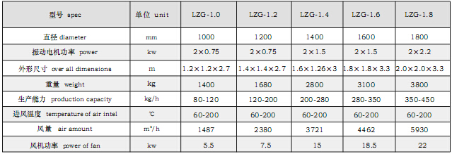 LZG螺旋振动干燥机主要适用于中药丸剂的干燥,也可适用于化工、制药、食品、塑料、建材、饲料等行业的颗粒状、短条状、球状物料的干燥。结构示意图: